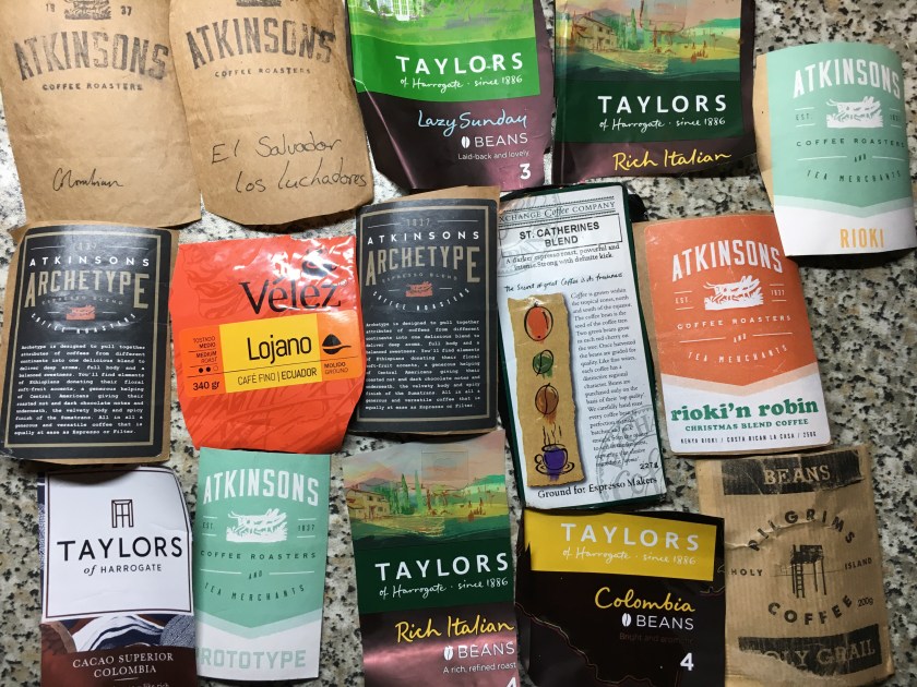 There’s a tradition in our house that every time we open a new bag of coffee beans we cut out the label and place it under the elastic band that’s around the pot where we store the beans.