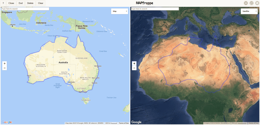 Have you ever wondered how big California is compared to Italy? Or perhaps you’ve wondered about the size of the parks in central London compared to Central Park in New York? Windermere compared to Loch Lomond? Or even Australia to the Sahara Desert? That’s where MAPfrappe comes in.