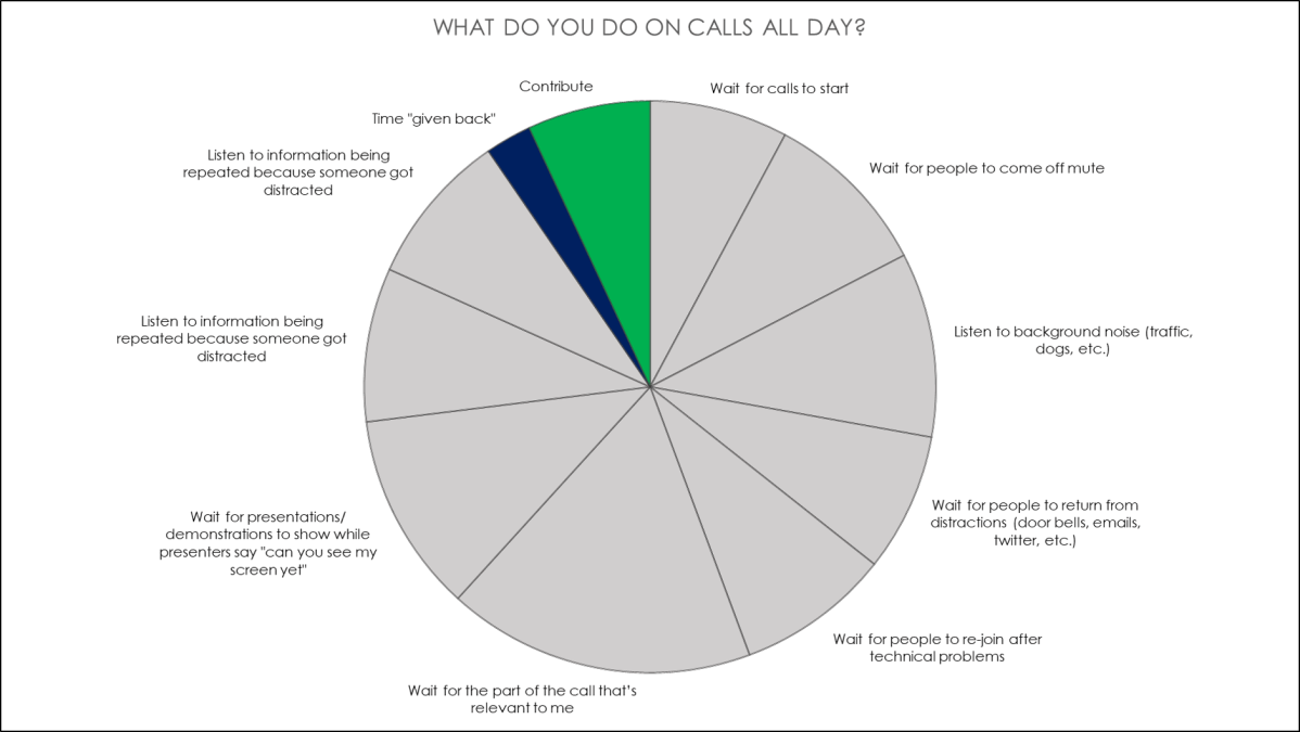 Following on from yesterday’s post: The 10 Rules of Conference Calls – A Not So Definitive List, and the feedback that I received, I thought I would do a quick, not so accurate, analysis of what I did on calls all day:
