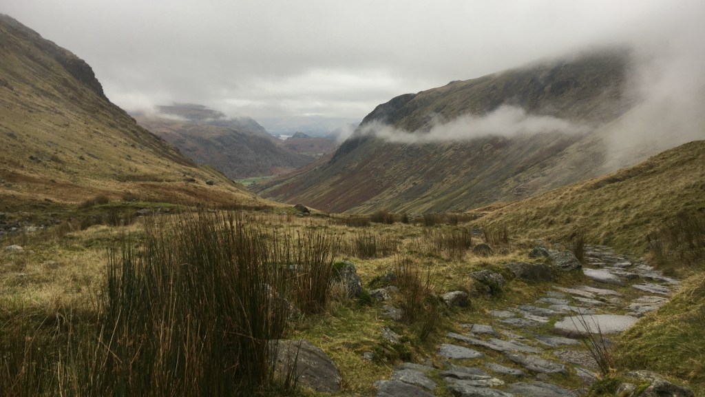 Up to this point I had been walking a well defined path which is one of the routes to a Lake District favourite and England’s highest peak. Even this was a discovery and something new for me. Having reached a small stream it was time to join a faint path branching off to the right, it was time for the real discovery to begin.